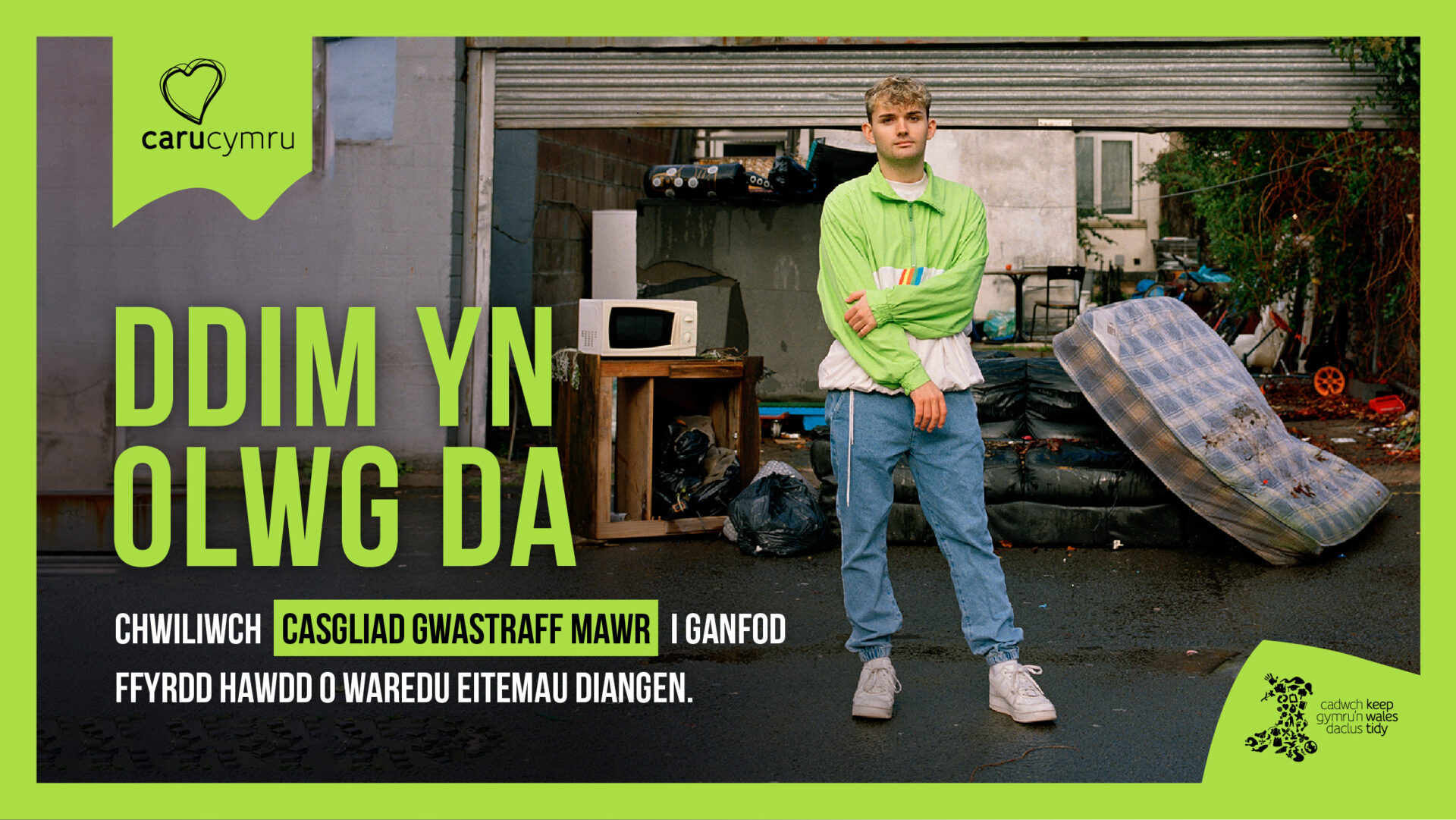 Nid yw eitemau wedi eu gadael ar ganol y stryd yn olwg da, mae’n costio miliynau i awdurdodau lleol eu symud, ac maent yn cael effaith niweidiol difrifol ar ein cymunedau.