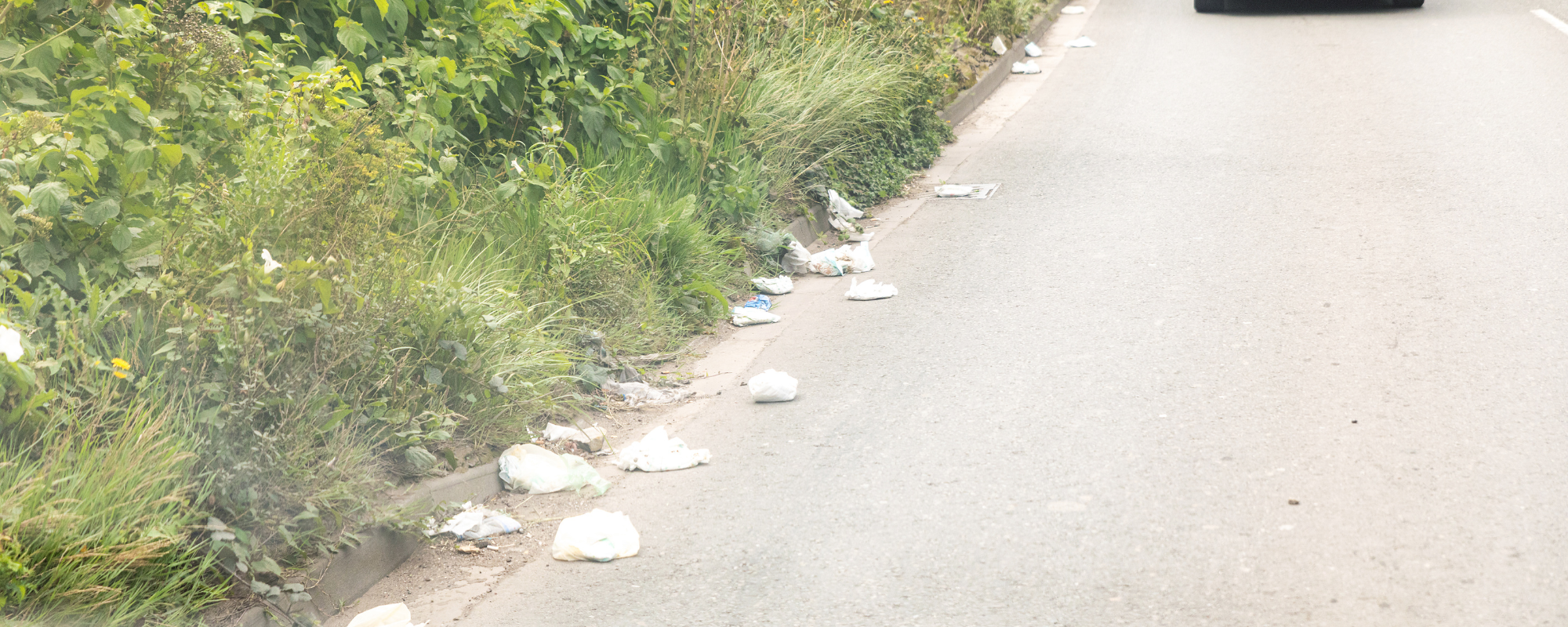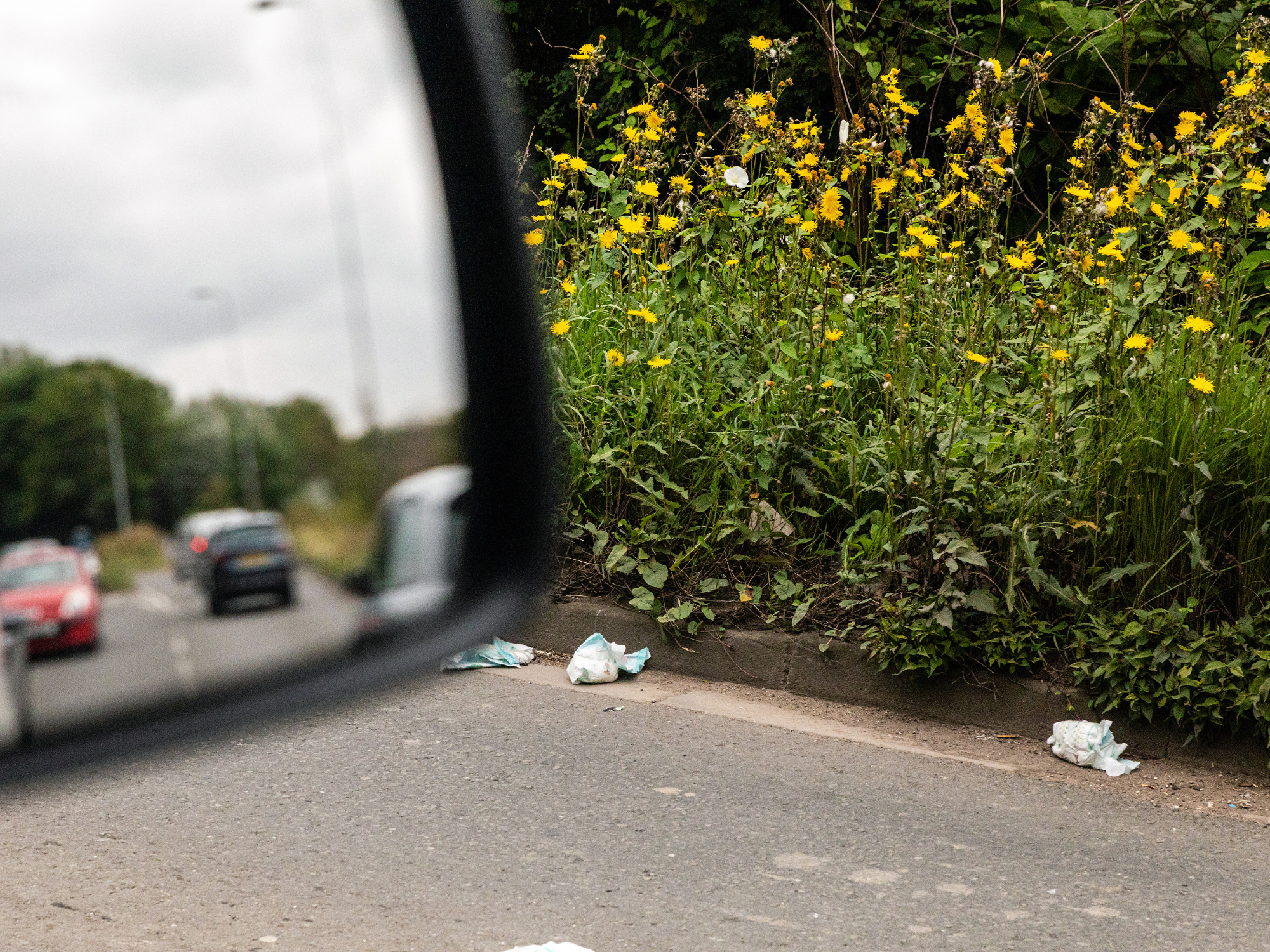 Edrych yn fanylach ar sbwriel ar ochr y ffordd