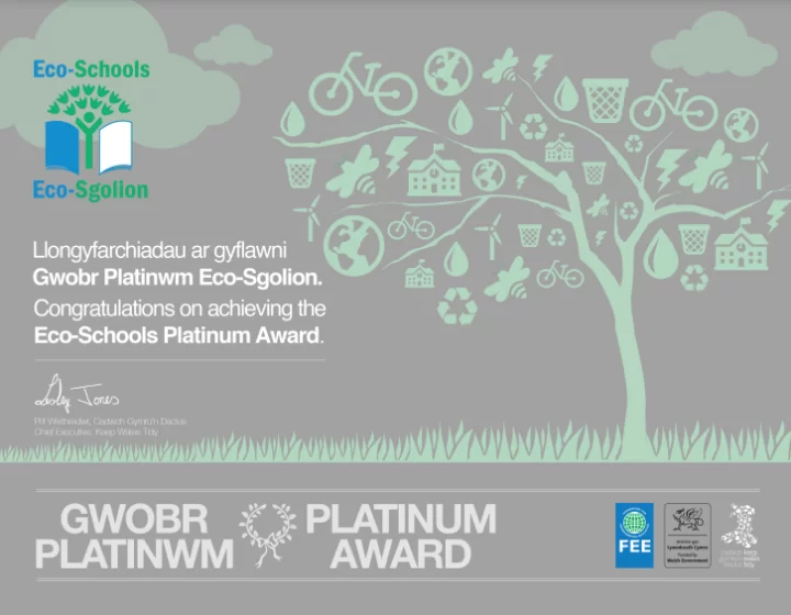 Rydym eisiau ysbrydoli a grymuso pobl ifanc i ysgogi newid amgylcheddol cadarnhaol.